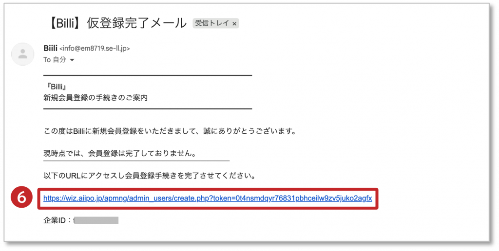 メールタイトル:【Billi】仮登録完了メール