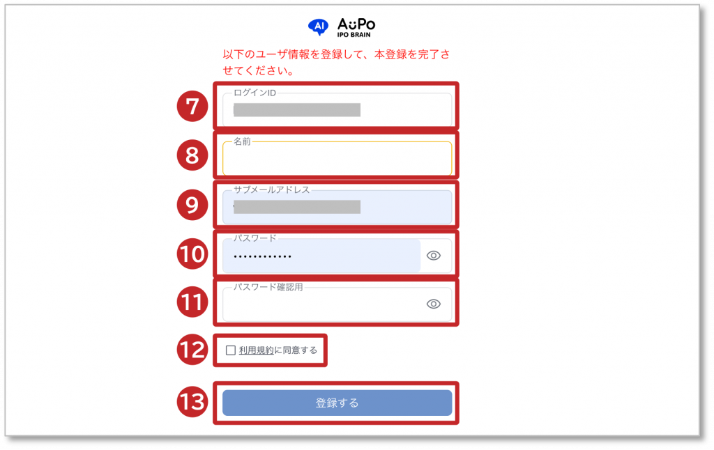 12. 「利用規約に同意する」にチェックを入れます。