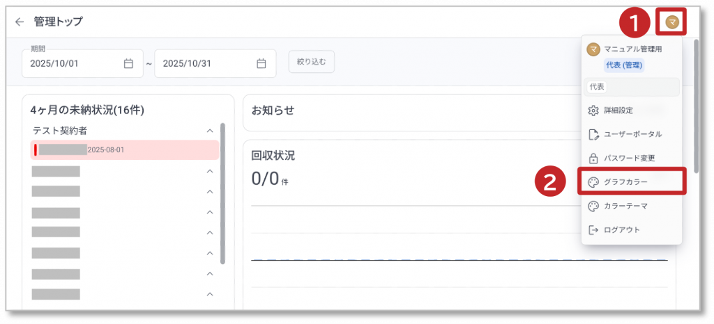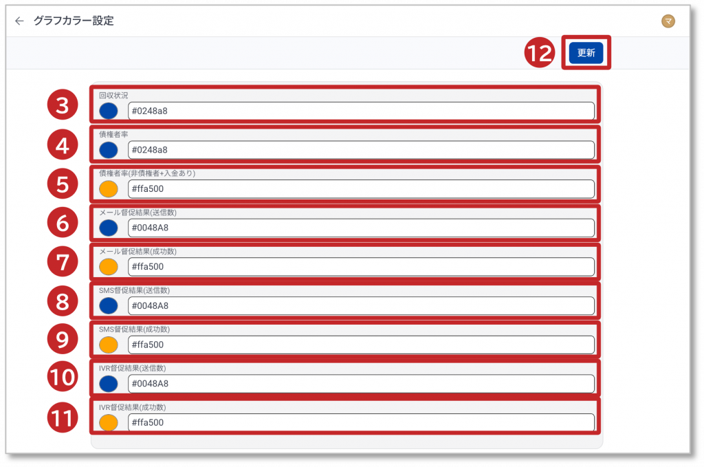 ⑤ 「債権者率(非債権者+入金あり)」のグラフカラーを指定します。