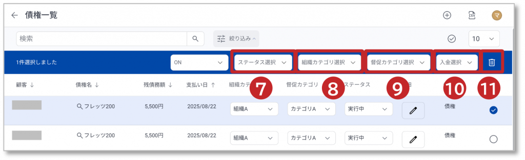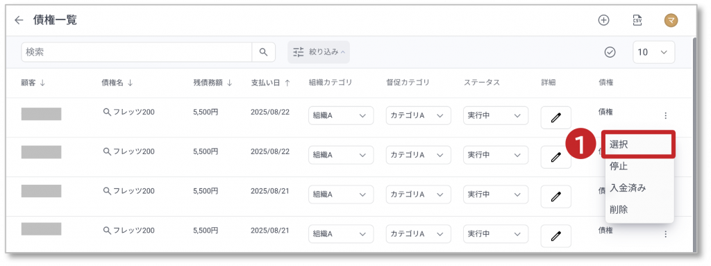 債権情報の選択方法を説明します。