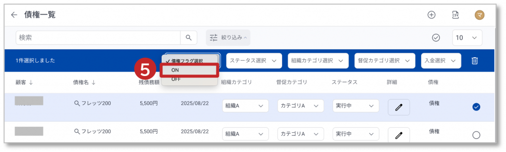 ④ 「債権フラグ選択」をクリックすると、選択項目が表示されます。